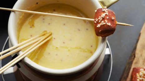 Изысканное в своей простоте блюдо фондю является растопленными несколькими видами сыра, с добавлением муки и небольшого количества вина. Его готовят в специальной посуде, растапливая содержимое на медленном огне.